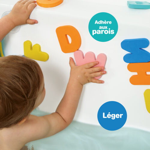 L’alphabet de bain en mousse EVA transforme le moment du bain en activité ludique et éducative. Composé de 26 lettres colorées, il favorise la découverte des formes, des couleurs et des premières lettres tout en stimulant la motricité fine dès 10 mois.